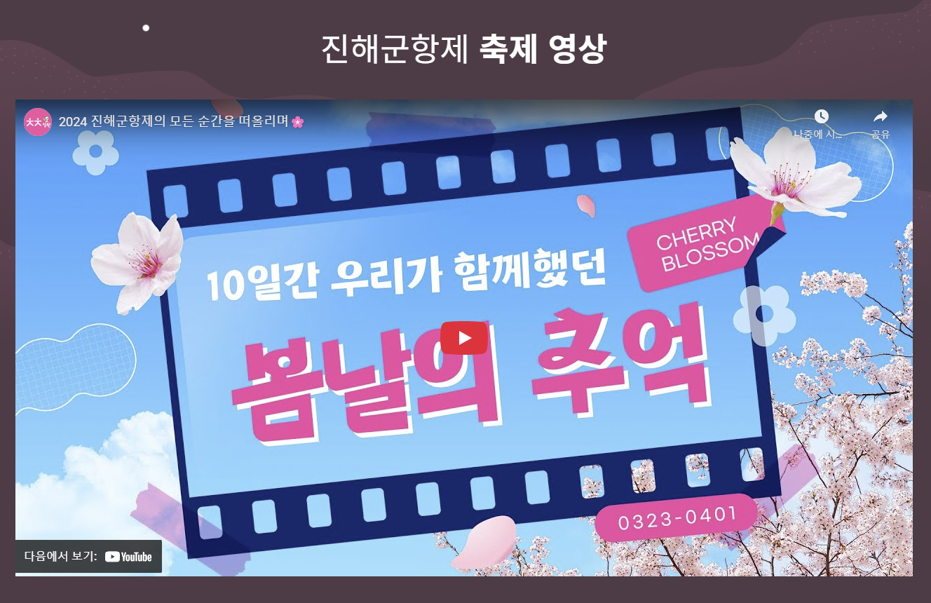 - 전야제: 3월 28일 오후 6시, 진해공설운동장에서 개막을 알리는 전야제 진행